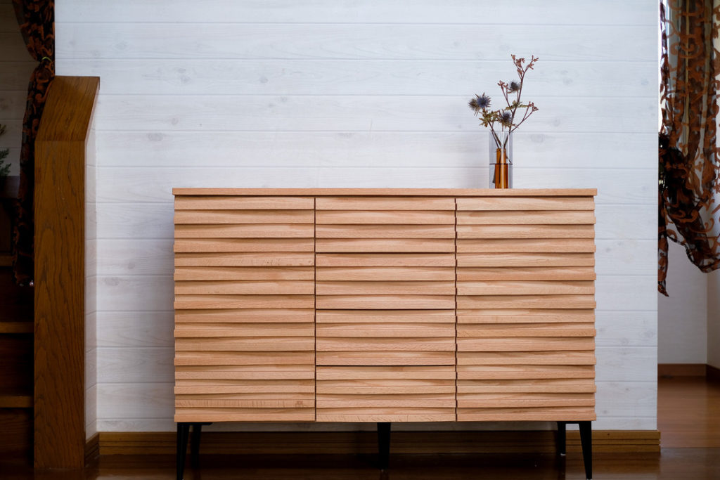 娘さんが大きくなられ、ご夫婦2人での生活を新たに始めるタイミング。新たな生活に合わせたインテリアを買い替えていく最初のきっかけに、レグナテックの『リップルサイドボード』をお選び頂きました。