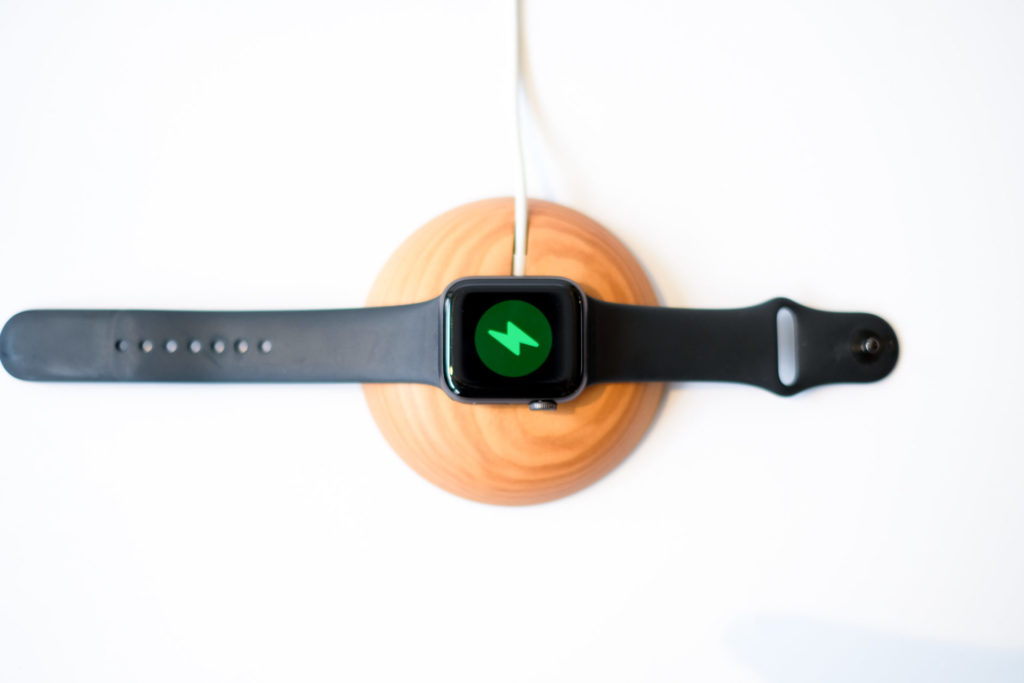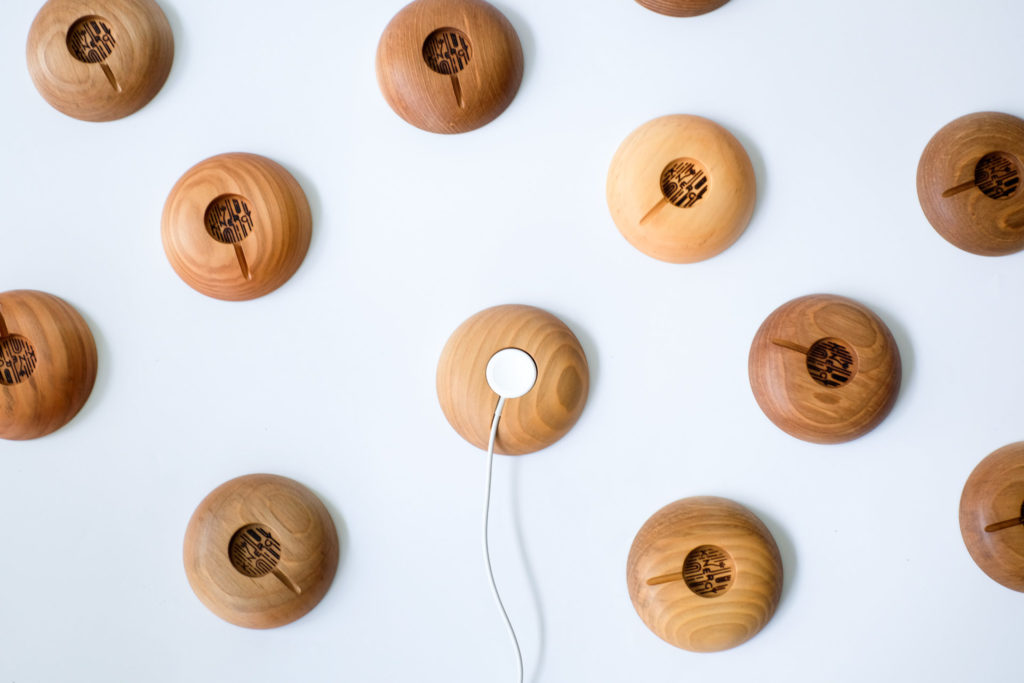 その木皿を作っている職人がアップルウォッチの充電器のスタンドを作りました。
