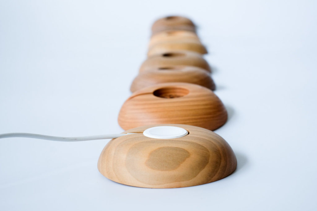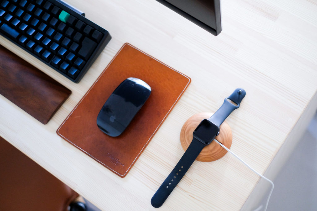 デスクに置けばたちまちにすっきりとした印象に。まさにアップルウォッチの充電ケーブルの『木皿』です。