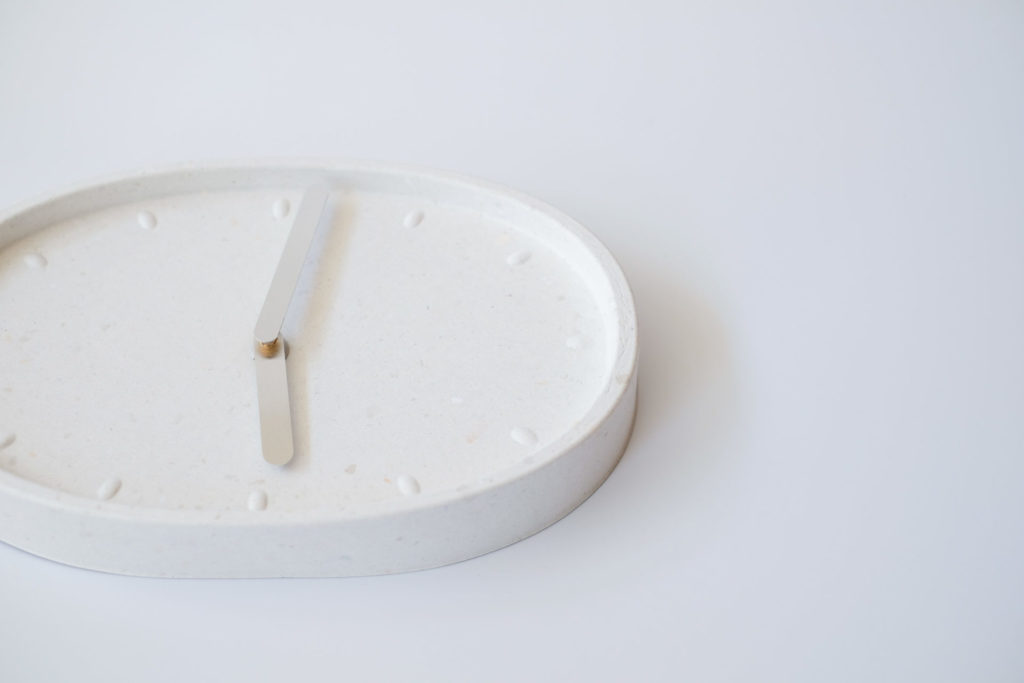 パルプモールドという紙の立体成型技術で作られる時計です。紙製でとても軽いのでムシピンでもしっかりと止まります。