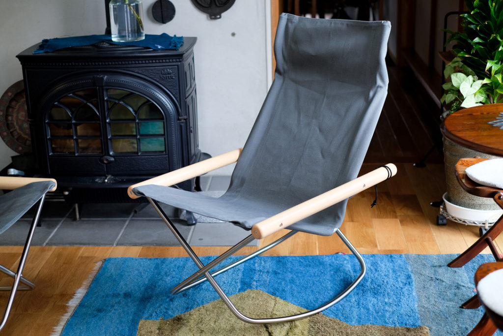 納品させて頂いたのはニーチェアXロッキングタイプを2脚。グレーの張布にナチュラルフレームの組み合わせ。やはりこの組み合わせは人気です。