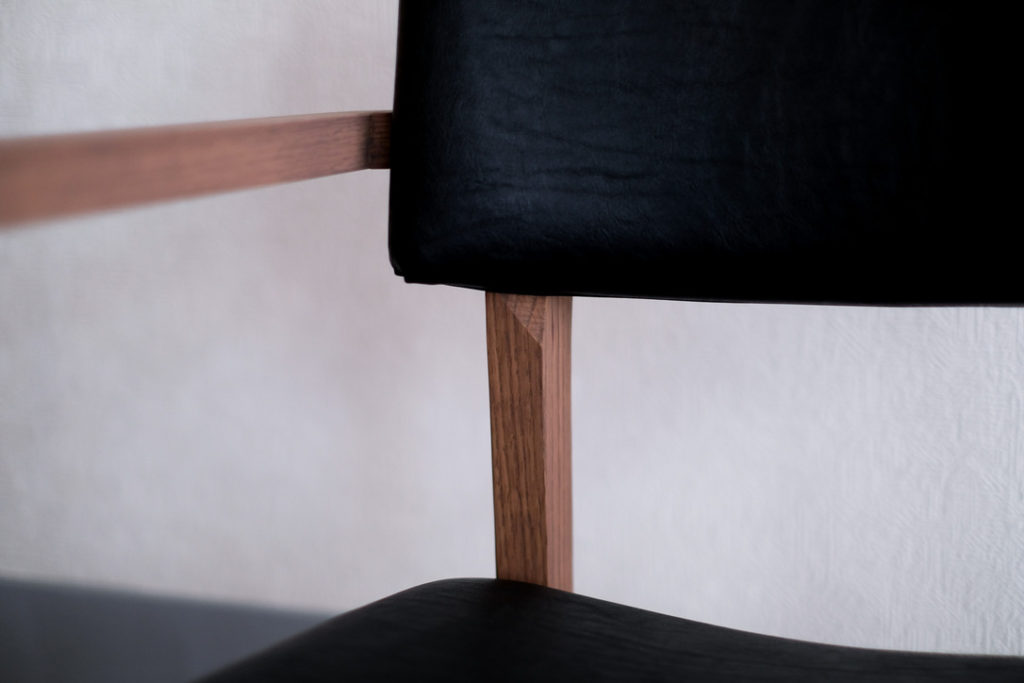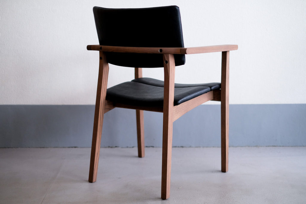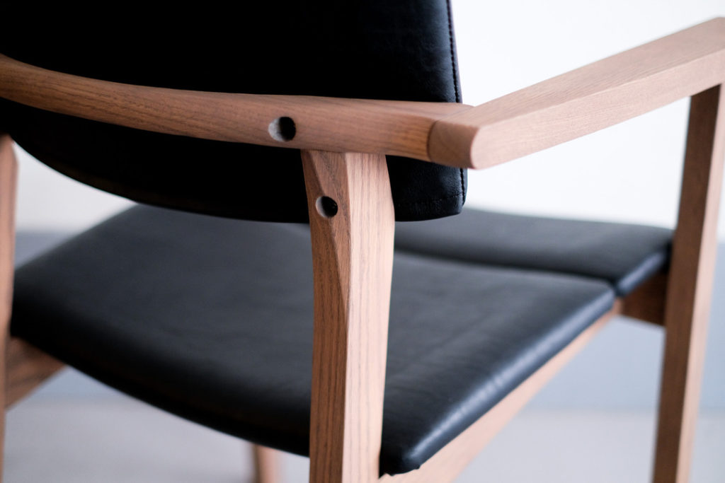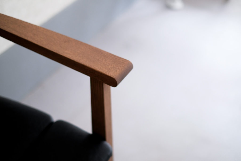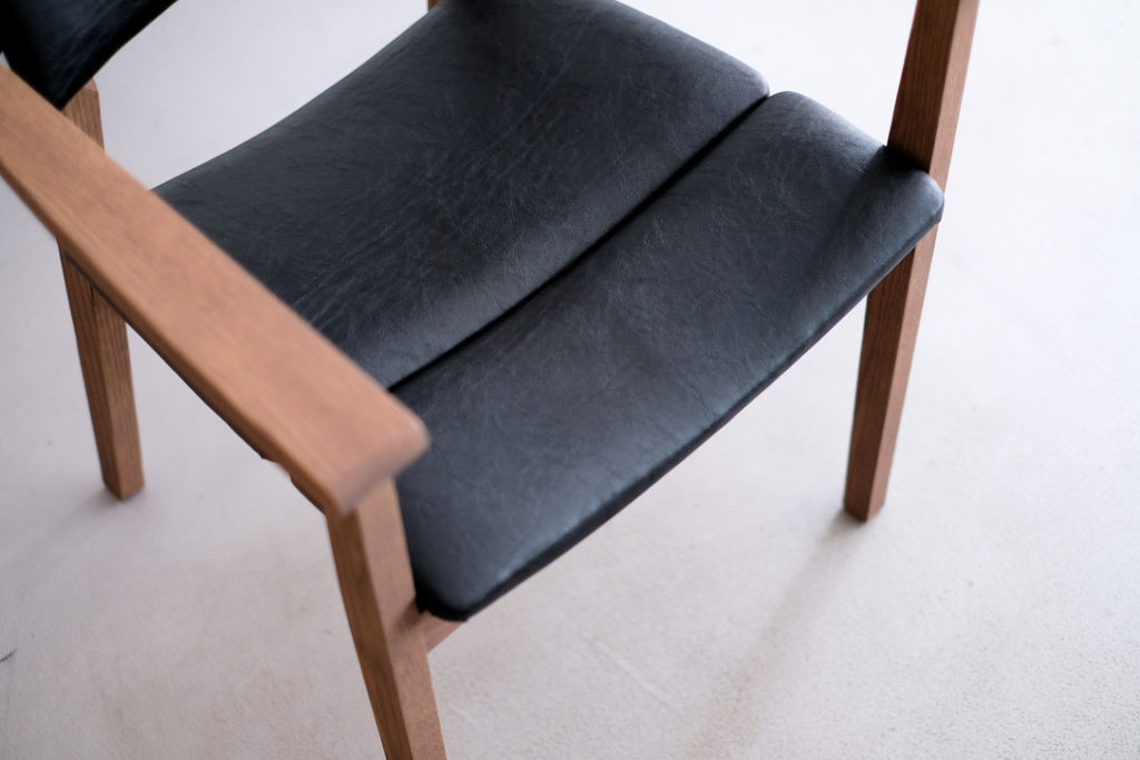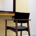 平田椅子製作所のTOPO arm chair。特徴的なのは座面が2枚に分かれた構造。それぞれの傾きがわずかに異なることで、座り心地を高め、長く座っていても疲れにくい仕様です。椅子の専門メーカーが座り心地を追求して作った椅子というだけあり、それはもう座り心地は抜群です。