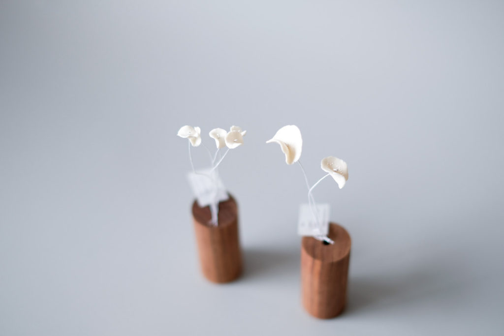 花や葉、実。植物の持つ造形の美しさをそのまま形どったような陶磁の作品群。ピアス、イヤリング、ブローチやイヤカフなどの装身具を始め、照明やモビール、オブジェなどの展示も予定しております。