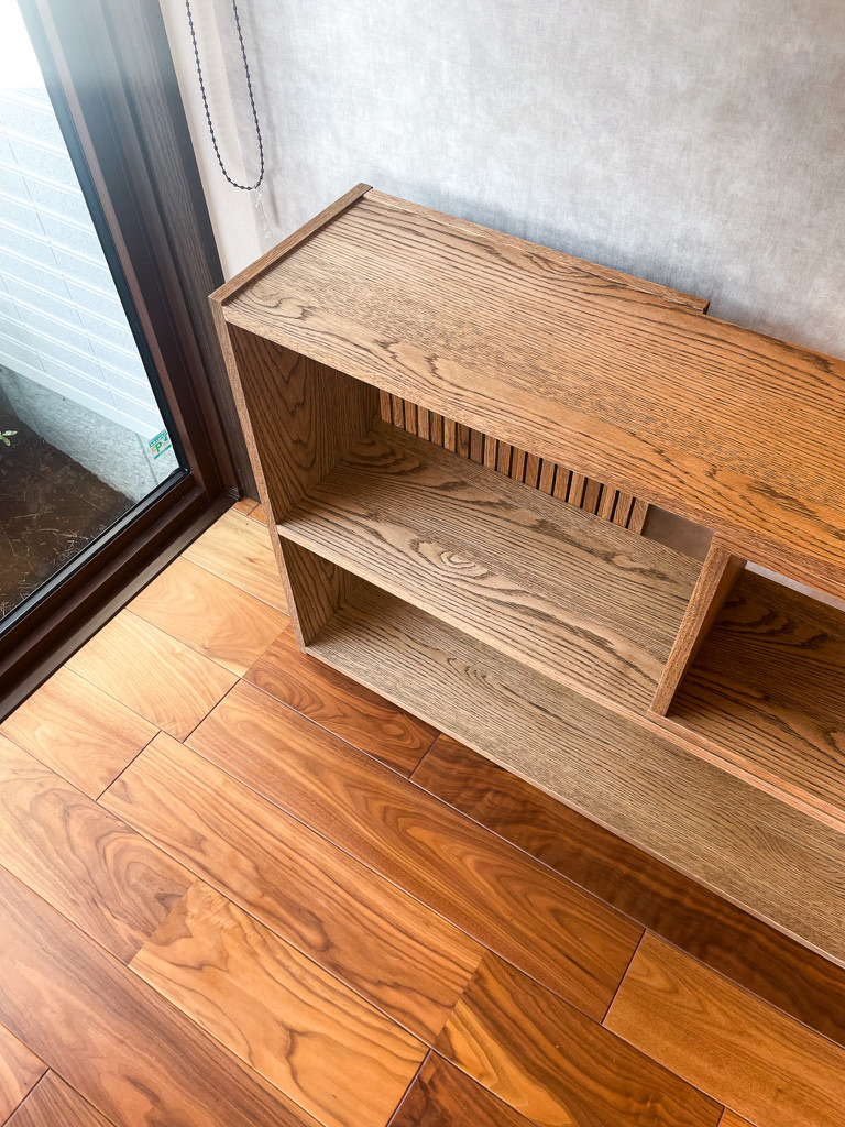 2025.02.25納品紹介BORDER SLIDE SHELF (納品先 : 個人宅) kurashimeku盛岡市のお客様宅の玄関へスライドシェルフボードをお届けいたしました。こちら、お店では什器として使っていた家具です。左右がスライドして自由に長さを変更する事が可能。収納力をその時々で変更出来るのがこちらの家具のポイントです。その気になればL字型に組む事も可能です。グレーなクロスとの色味の相性が良いですね。itemEasy life / BORDER SLIDE SHELF (オーク材)