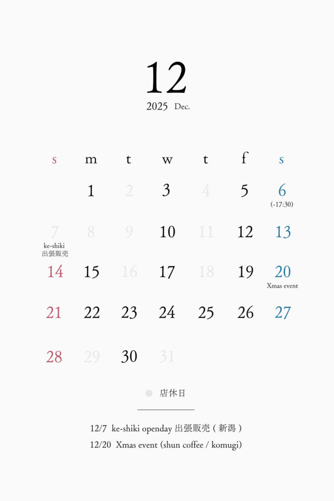 ■ 12月7日|出張販売(新潟・keshi-ki オープンデイ)